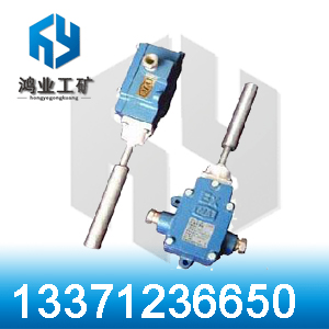 GEJ30型跑偏傳感器(原型號(hào)KGP-2)GEJ30(原型號(hào)KGP-2型)跑偏傳感器適用于具有爆炸性混合氣體甲烷的危險(xiǎn)場(chǎng)所以及露天煤礦、選煤廠等工作場(chǎng)所,作為礦用帶式輸送機(jī)保護(hù)裝置的配套檢測(cè)之用。對(duì)膠帶輸送機(jī)的輸送帶的跑偏情況進(jìn)行監(jiān)控,當(dāng)膠帶輸送機(jī)的輸送帶跑偏時(shí),語音報(bào)警。礦用本質(zhì)安全型 外形尺寸:350mm×165mm×65mm;質(zhì)量:3kg。動(dòng)作角度30±3°觸桿的動(dòng)作力:20~100N。復(fù)位角度15°探桿轉(zhuǎn)動(dòng)的極限角度不小于70°。閉合接點(diǎn)的接觸電阻不大于0.1Ω,振動(dòng)、沖擊和壽命試驗(yàn)后不大于0.2Ω。工作原理傳感器安裝在皮帶兩邊的支架上,正常時(shí)皮帶不接觸跑偏觸桿,傳感器的兩接線端子不接通;當(dāng)皮帶跑偏接觸到跑偏觸桿并推動(dòng)觸桿偏離正常位置30°±3°時(shí),傳感器的兩接線端子接通。皮帶復(fù)位后,跑偏觸桿自動(dòng)返回至15°±3°時(shí),傳感器的兩接線端子應(yīng)斷開。